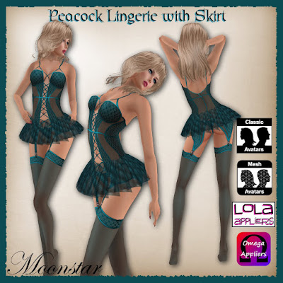 We now have a small store at Kikai and every week will be offering a "StealDeal". This week it is the Peacock Lingerie with Skirt by Moonstar on special offer for just L$50!